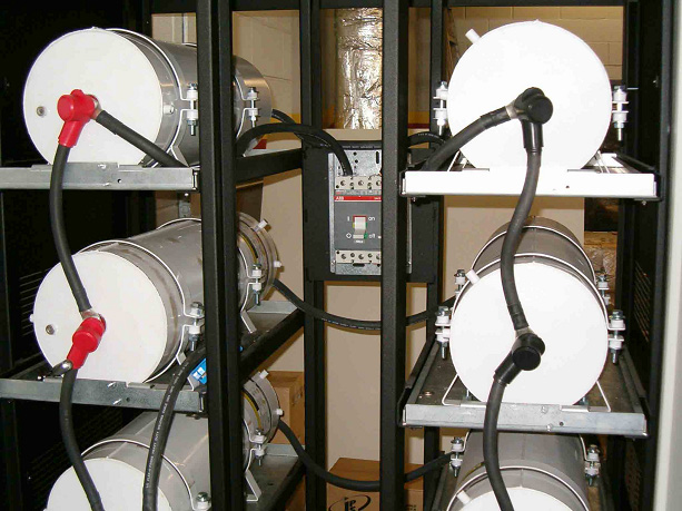Tavrima supercaps are now available in stainless steel housings which are especially good for outdoor installations. Shown heavy duty locomotive starting installation.